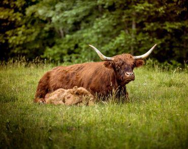 Calfinated Cattle Co.’s cow herd includes 5 momma cows and 5 up and coming heifers. We are looking forward to 5 calves in spring 2024. Our breeding program is small and personal and our cows are loved on everyday, twice a day most days. Our sweet mommas know theirs names and love being brushed and doted on. Their care and comfort is an important part of each day on our ranch.